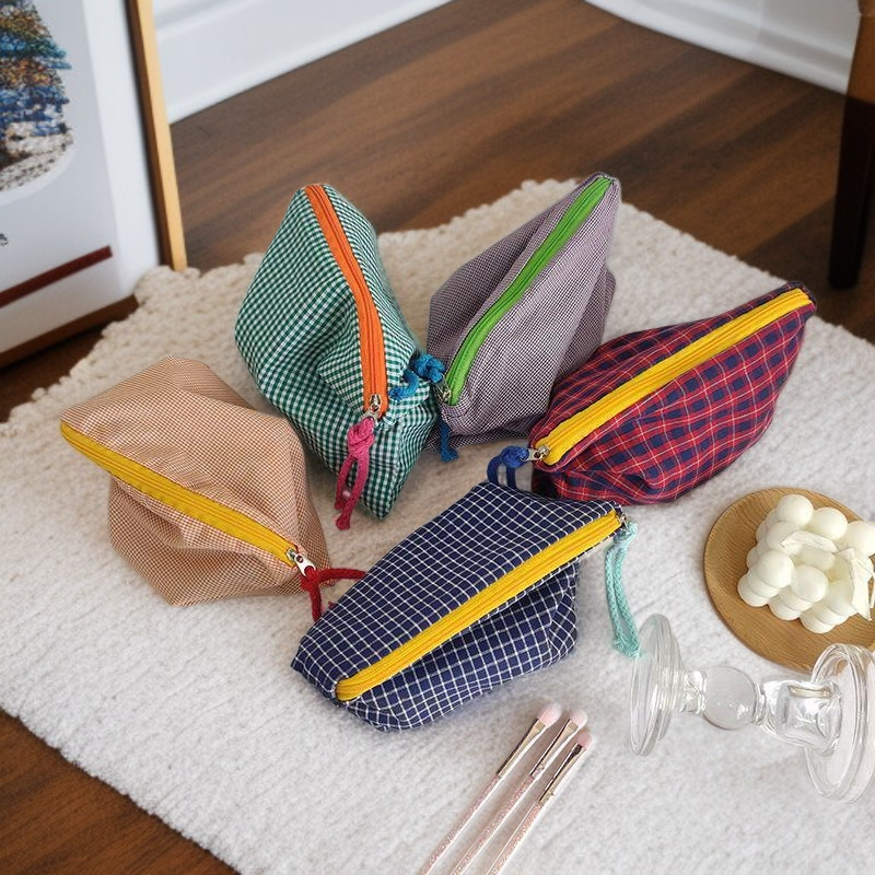レトロな格子デザインが可愛くておしゃれ、毎日の通学やオフィスでも個性を演出できる文具ポーチです。