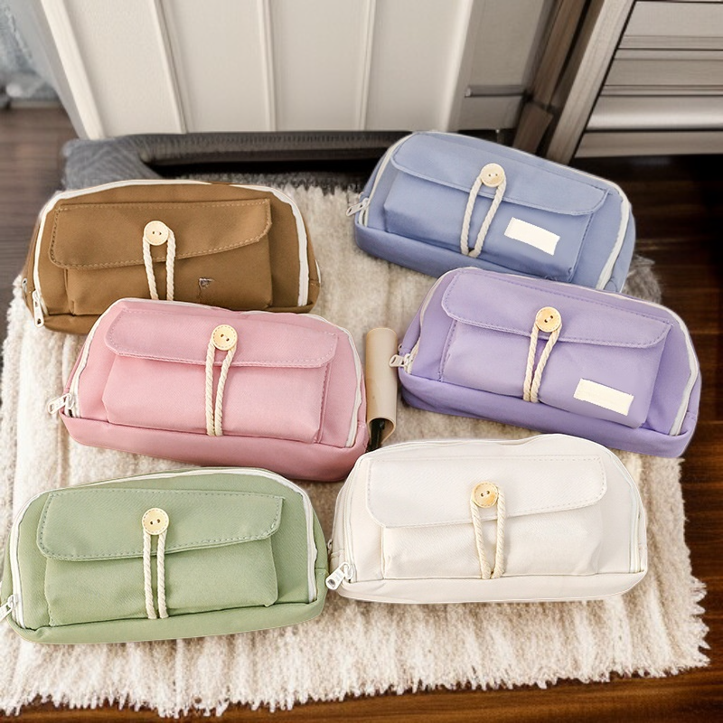 シンプルなキャンバスボタン付きペンケース