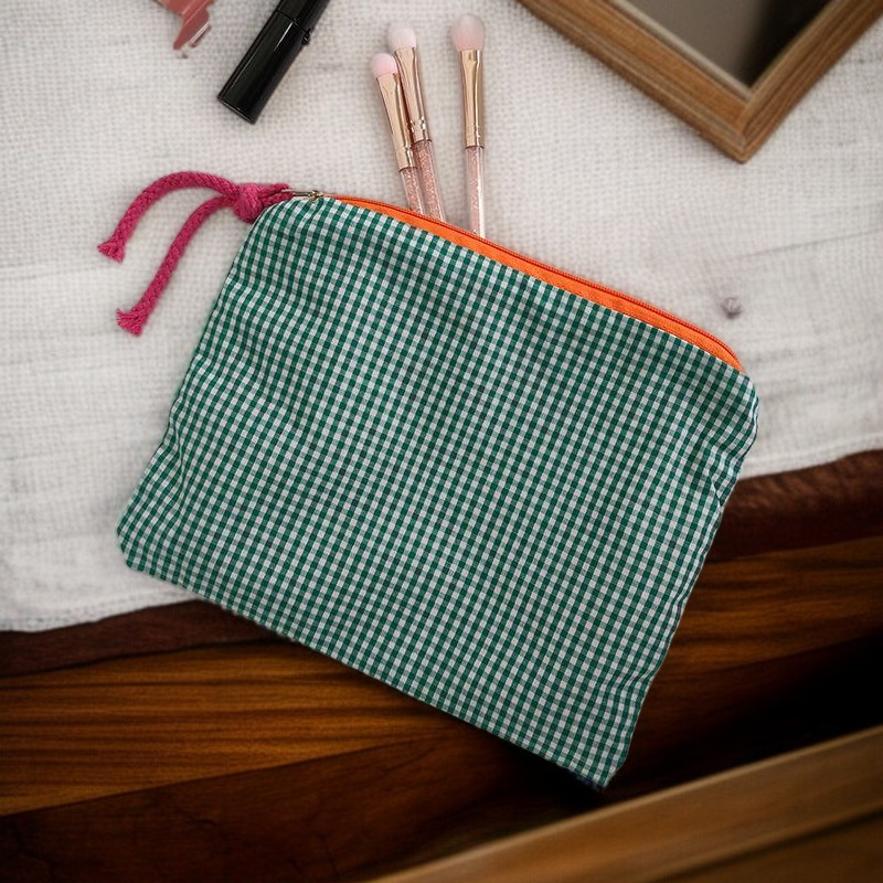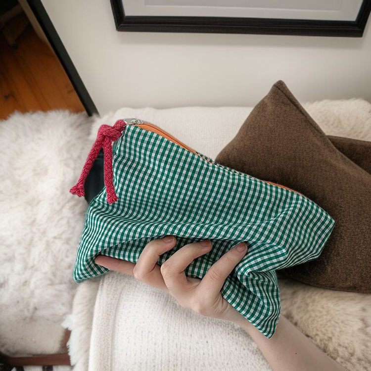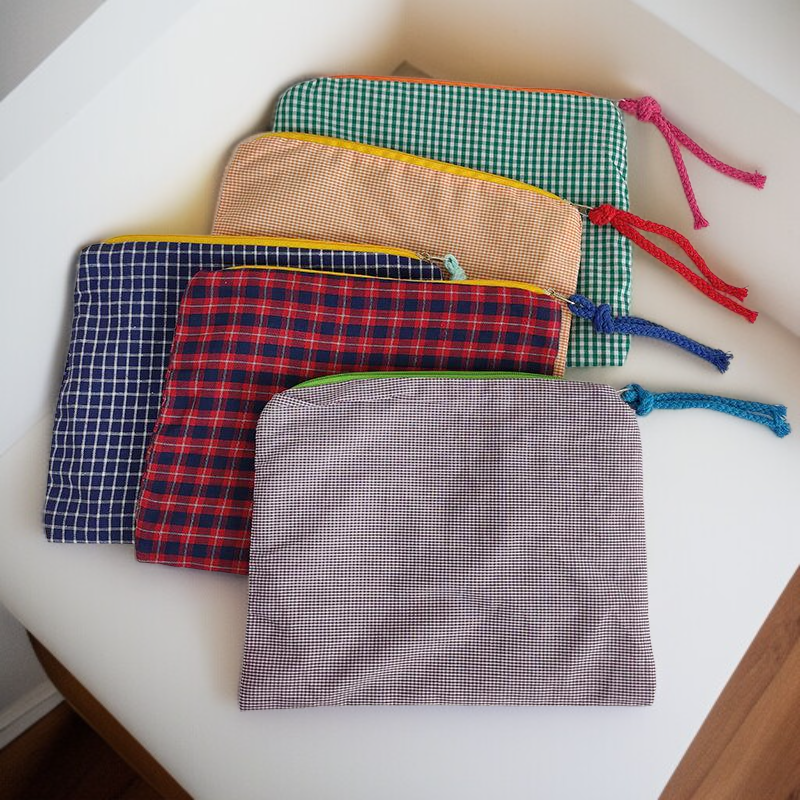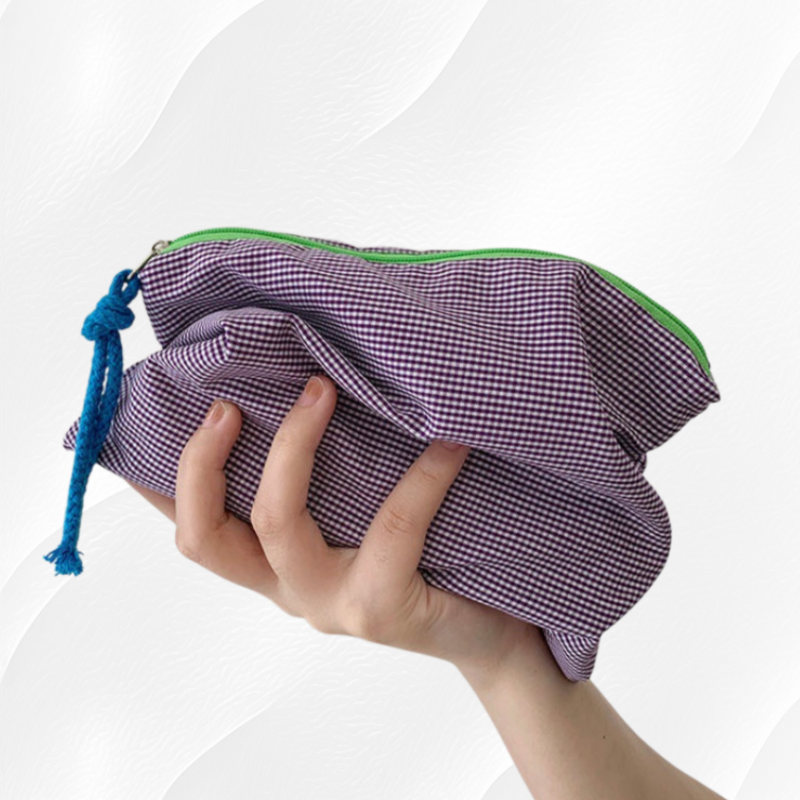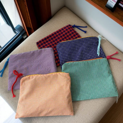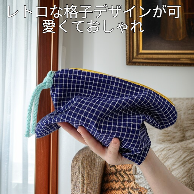 ● レトロな格子デザインが可愛くておしゃれ、毎日の通学やオフィスでも個性を演出できる文具ポーチです。