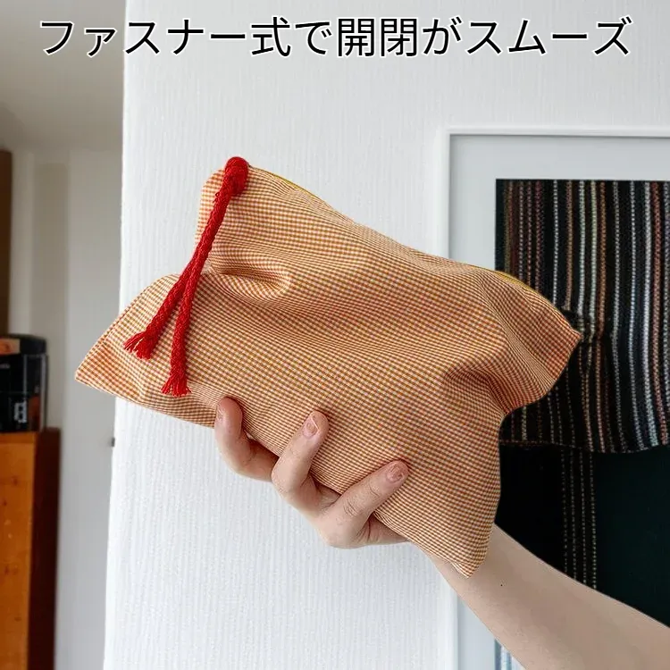 ● ファスナー式で開閉がスムーズ、必要なアイテムをすぐに取り出せる実用的な設計となっています。